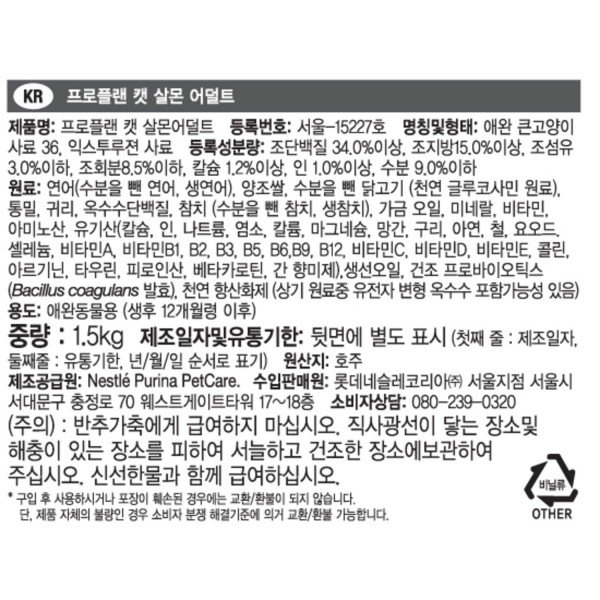 퓨리나 프로플랜 캣 사료 성묘용 연어 1.5kg